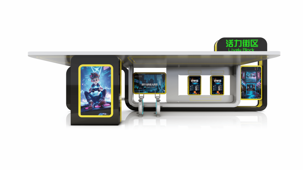 驿站健身仓 活力健身舱是一种集合驿站与互动设备的可装配式的户外设施。可根据客户需求配置骑行、AR互动、储物柜等多种智慧设备。解决了户外设施在雨雪天气无法使用的问题。 尺寸定制 设备定制 AR互动 驿站设施 智能棋院 产品演示