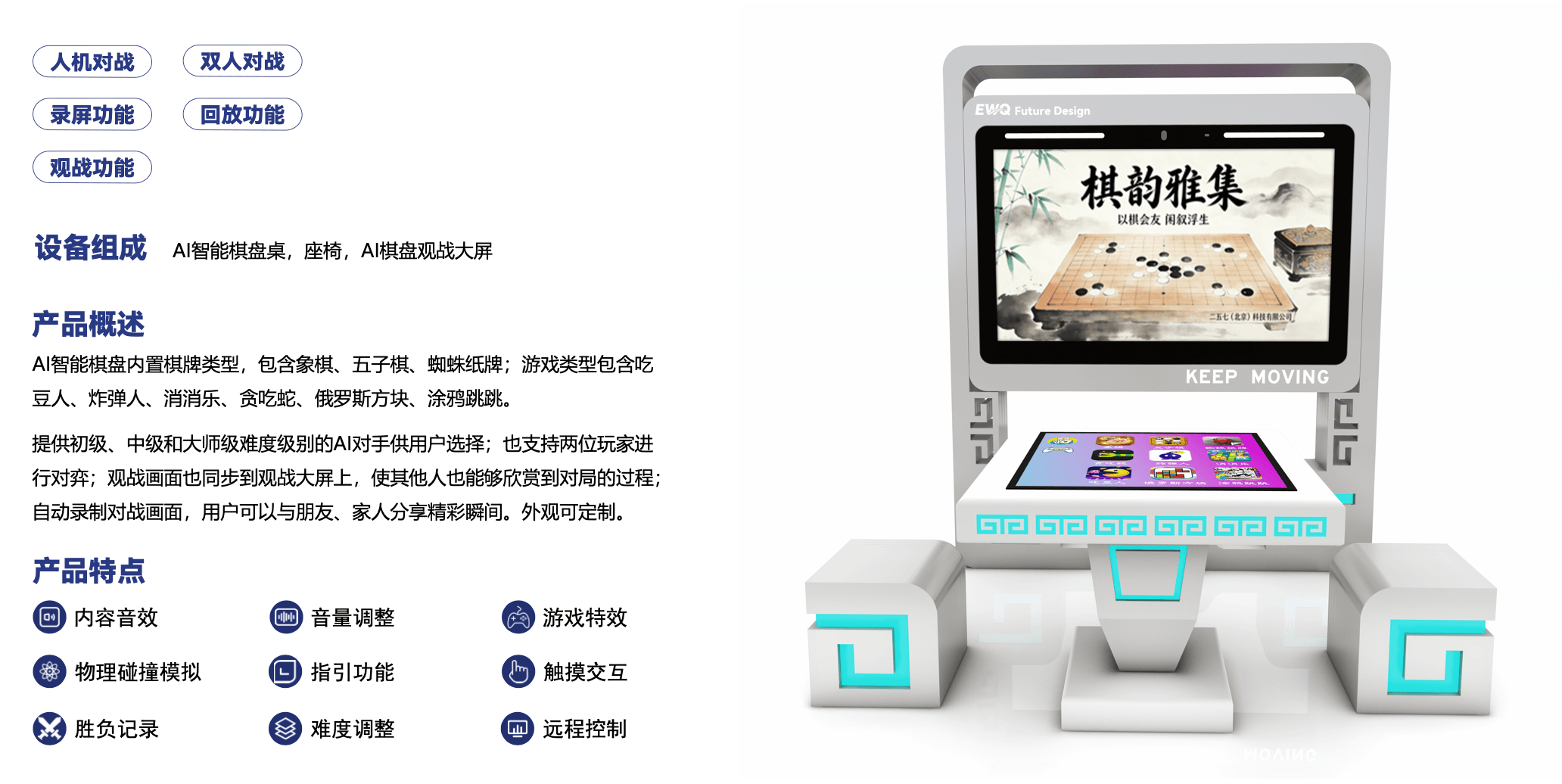 智慧棋盘是一款集智能交互、数据分析、在线竞技等多种功能于一体的高科技棋盘产品。它巧妙地将传统棋类的文化底蕴与现代科技的创新力量相结合,通过内置的智能传感器、高清显示屏以及强大的软件系统,为用户打造一个全方位、多层次的棋艺交流与提升平台。